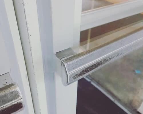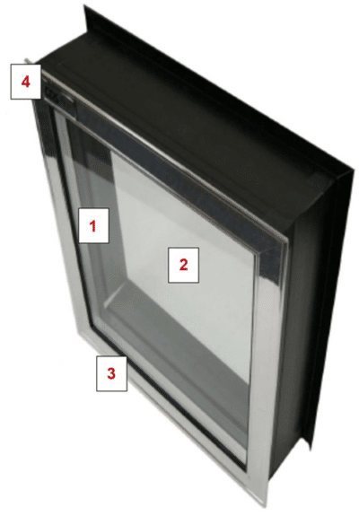 1 – Proprietary DefenseLite extrusion attaches to the existing frame and separates clear shield from primary glass